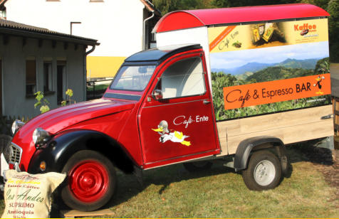 Café-Ente auf Reisen